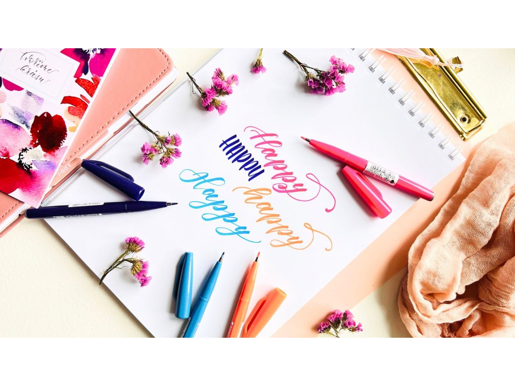 Sada 4 barevných brush penů Pentel Happy vaše nápisy krásně oživí a zpestří.