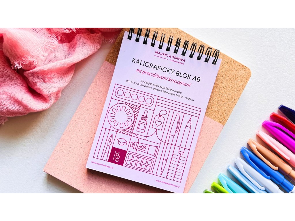 - Kaligrafický blok A6 je originální autorský výrobek Markéty Šímové, proto ho najdete pouze na tomto e-shopu