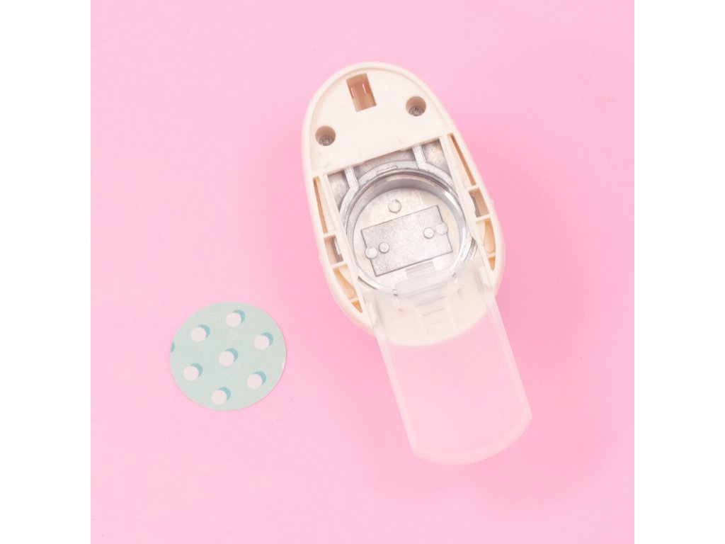 - Pokud chcete vykrojit pouze poloviční kruh, vložte papír pouze do označeného místa na straně raznice. Tento druh výstřižku je velmi užitečný pro vytváření kapes.
